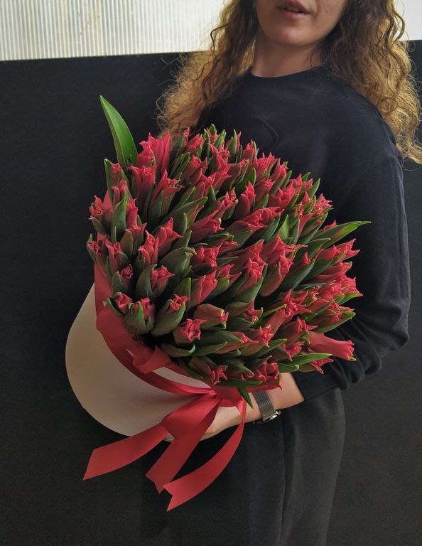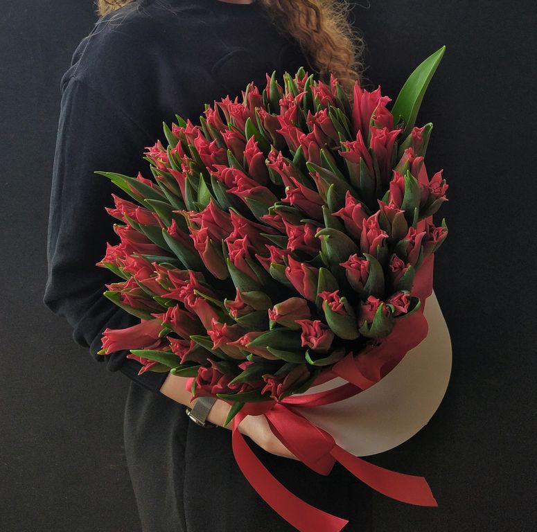 скоро в наличии Red moire Season Купить в 1 клик В корзину Спросите нас в WhatsApp Спросите нас в WhatsApp Описание Характеристики Описание Шляпная коробочка с неординарными алыми тюльпанами сорта "Поцелуй". Размер зависит от выбранного количества цветов в букете. Состав: Тюльпан "Поцелуй" Шляпная коробка Характеристики Тюльпаны есть