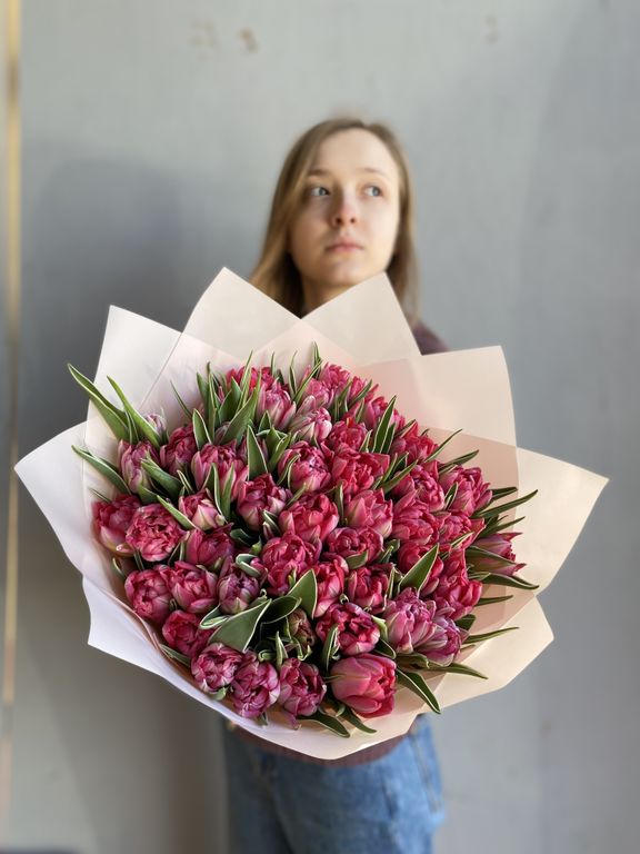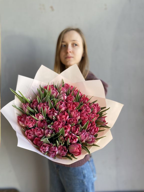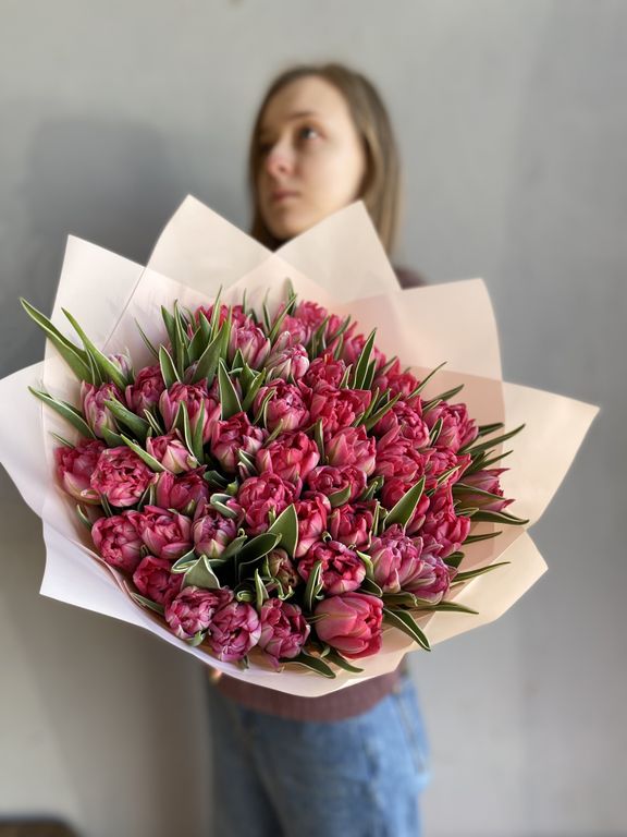 Raspberry 6500 руб. Купить в 1 клик В корзину Спросите нас в WhatsApp Спросите нас в WhatsApp Описание Характеристики Описание Притягательный и яркий букет из 49 пионовидных тюльпанов покорит любое, даже самое холодное сердце!Размер: 35*40см. Характеристики Цвет букета Розовый